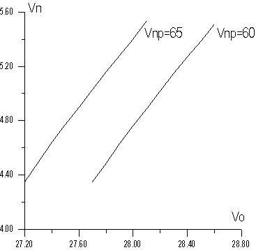 Рис.12. Зависимость нормальной к склону составляющей скорости приземления от начальной скорости при различных предельных скоростях.