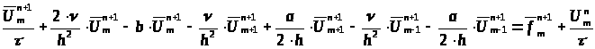 a_progonka:=(-2*v-a*h)/(2*SQR(h)); b_progonka:=(2*SQR(h)+2*v*tau-b*tau*SQR(h))/(SQR(h)*tau);