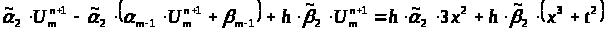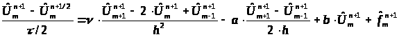 Betta[m]:=(Fun_F(x0+m*h,time+tau/2,a,b,v)+2*U_m[m]/tau-a_progonka*Betta[m-1])/