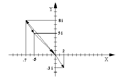 Z>1> + Z>2> = 2 – 7 + (–3 + 8)×i = –5 + 5×i
