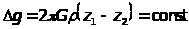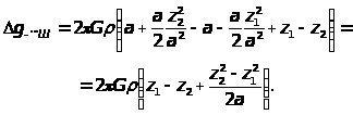 Это уже известная нам редукция Буге. Следовательно, притяжение плоского слоя не зависит от высоты наблюдения z, а зависит от толщины слоя H.