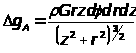 Рассмотрим очень важную задачу притяжения, создаваемого плоским слоем в точке А, расположенной на некоторой высоте z над ним. Пусть плотность слоя r = const. Вырежем в нем диск радиусом r и толщиной Dz. Найдем потенциал элемента массы dm этого диска VА и притяжения Dg, которое он создает в точке А: