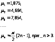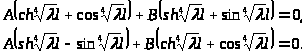 Эта однородная система имеет нетривиальные решения A и B, если определитель системы равен нулю. Приравнивая этот определитель нулю, получаем трансцендентное уравнение для вычисления собственных значений