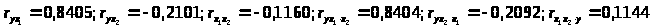 Частные коэффициенты корреляции изменяются в пределах от –1 до 1.