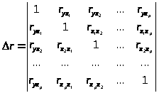При линейной зависимости коэффициент множественной корреляции можно определить через матрицу парных коэффициентов корреляции: