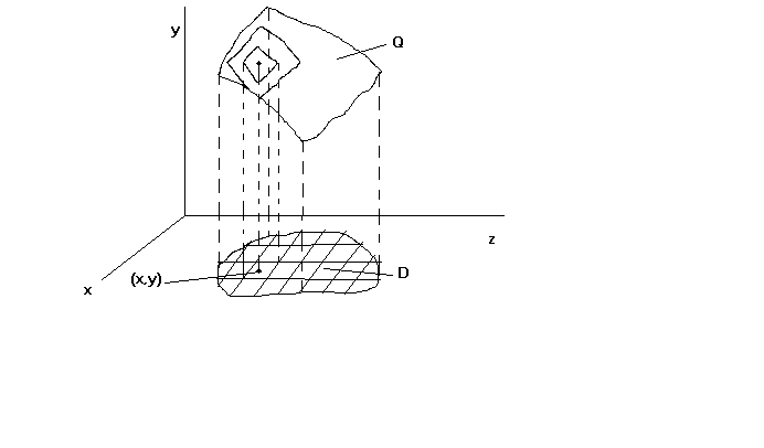 Пусть в обл. P плоскости XOY задана некоторая фун-ия z=f(x;y). Разобъём обл. P на n частичных обл. Рi , где i=1…n, возмём произвольную точку обл. (xI;hI) Î Рi , l - наиболь-ший диаметр чатичных обл.