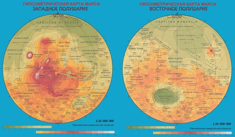 Гипсометрическая карта Марса масштаба 1:26 000 000 выпущена в 2004 г. издательством физико-математической литературы (где можно ее приобрести).