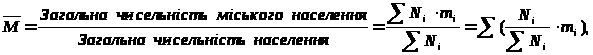 де N>i> – чисельність населення у регіоні і, m>i >– частка міського населення у регіоні і.