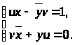 (u>1>;v>1>) * (u>2>;v>2>) = (u>1>u>2 >- v>2>v>1 >; v>2> u>1> + v>1> ū>2>)>.>