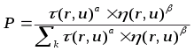 Движение муравья основывается на одном и очень простом вероятностном уравнении. Если муравей еще не закончил путь, то есть не посетил все узлы сети, для определения следующей грани пути используется уравнение :