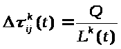 Пройденный муравьем путь отображается, когда муравей посетит все узлы диаграммы. Обратите внимание, что циклы запрещены, поскольку в алгоритм включен список табу. После завершения длина пути может быть подсчитана - она равна сумме всех граней, по которым путешествовал муравей. Уравнение показывает количество фермента, который был оставлен на каждой грани пути для муравья k. Переменная Q, является константой.