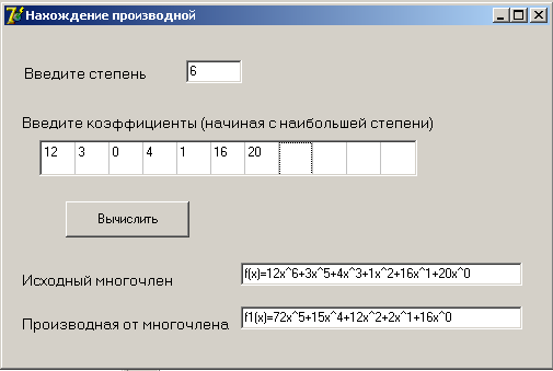 Составила программы для нахождения частного и остатка при делении многочленов; наибольшего общего делителя двух многочленов; производной многочлена.