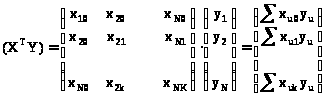Умножив транспонированную матрицу X на матрицу Y, получим:
