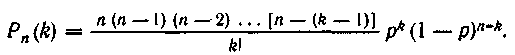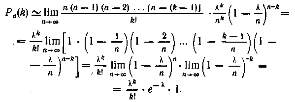 Зробимо важливе допущення: добуток пр зберігає постійне значення, а саме і пр=λ. Як буде випливати з подальшого це означає, що середнє число появ події в різних серіях іспитів, тобто при різних значеннях п, залишається незмінним. Скористаємося формулою Бернуллі для обчислення цікавлячої нас імовірності:
