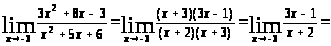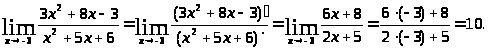 Анализ задачи. В данном случае, непосредственное применение теоремы о пределе частного невозможного, поскольку, как показывает подстановка числа. -3 вместо x и предел числителя и предел знаменатели равны пулю.