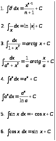10. Таблица основных неопределенных интегралов:
