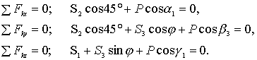 Решив составленные уравнения при заданном значении силы Р и углов, найдем: