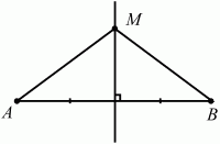 Геометрическим местом точек, равноудалённых от двух данных точек, будет прямая, перпендикулярная к отрезку, соединяющему эти точки, и проходящая через его середину (рис. 5). MA = MB, где М – произвольная точка на серединном перпендикуляре отрезка АВ.
