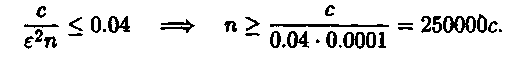 Розв'язок. В цьому прикладі є = 0.01. Щоб одержати надійність 96% згідно формули (6) достатньо підібрати таке п, яке задовольняє нерівність