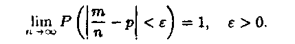 Теорема Бернуллі. Нехай імовірність появи події А в кожному із п незалежних повторних випробувань дорівнює р, т - число появ події А (частота події) в п випробуваннях. Тоді