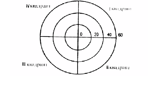 Для удобства построения и чтения диаграммы в полярной системе координат строится координатная сетка в виде концентрических окружностей с центром в полюсе. При этом деления шкалы могут быть произвольными. Такая координатная сетка называется радиальной (рис.1.3).