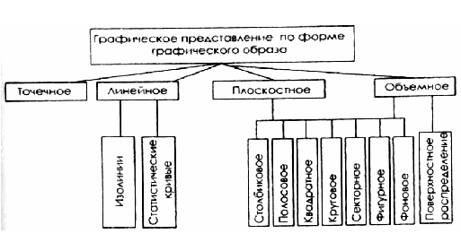 Формы графического образа разнообразны: геометрические и фигурные (негеометрические) знаки с плоскостным или объемным изображением. В соответствии с этим различают графики точечные, линейные, плоскостные и пространственные (объемные).