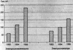 Рис. 2. Динамика выпуска книг и брошюр в одном из регионов России за 1993-1995 гг.