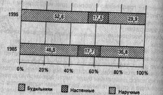 Рис. 13. Доли вкладов граждан в Сбербанк и коммерческие банки в одном из городов в 1995 г. (%)