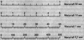 Масштабом равномерной шкалы называется длина отрезка (графический интервал), принятого за единицу и измеренного в каких-либо мерах. Чем меньше масштаб (рис.5.3), тем гуще располагаются на шкале точки, имеющие одно и то же значение. Построить шкалу - это значит на заданном носителе шкалы разместить точки и обозначить их соответствующими числами согласно условиям задачи.