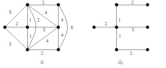 На рис.4 изображены нагруженный граф G и его минимальный каркас G1.