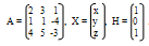 Обозначим через матрицу А – матрицу коэффициенты при неизвестных; Х – матрицу-столбец неизвестных Х, У, Z>; >H – матрицу-столбец свободных членов: