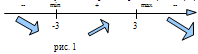 На рис. 1 знаками +, - указаны интервалы знакопостоянства производной у′, а стрелками – возрастание и убывание исследуемой функции.