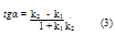3. Угол α между двумя прямыми, угловые коэффициенты которых равны k>1 >и k>2>, определяется по формуле: