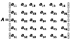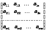 Для краткого обозначения матрицы часто будет использоваться либо одна большая латинская буква (например, A), либо символ || a >ij>> >|| , а иногда с разъяснением: А = || a >ij>> >|| = ( a >ij>> >), где (i = 1, 2, ..., т, j=1, 2, ..., n).