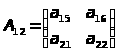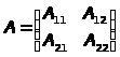 Предположим, что некоторая матрица A = || a >ij>> >|| при помощи горизонтальных и вертикальных прямых разбита на отдельные прямоугольные клетки, каждая из которых представляет собой матрицу меньших размеров и называется блоком исходной матрицы. В таком случае возникает возможность рассмотрения исходной матрицы А как некоторой новой (так называемой б л о ч н о й) матрицыі А = || A >>> >||, элементами которой служат указанные блоки. Указанные элементы мы обозначаем большой латинской буквой, чтобы подчеркнуть, что они являются, вообще говоря, матрицами, а не числами и (как обычные числовые элементы) снабжаем двумя индексами, первый из которых указывает номер «блочной» строки, а второй — номер «блочного» столбца.
