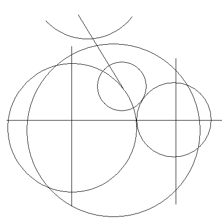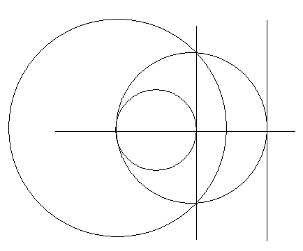 Точка Р – внутри базисной окружности. Тогда построение выполняем в обратом порядке.