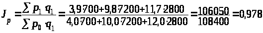 или 97,8%, т.е. цены на всю продукцию снизились на 2,2%.