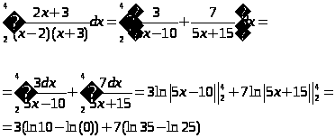 Итак, A=3/5, B=7/5, зная эти коэффициенты, вычисляем интеграл.