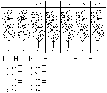 Приведем систему заданий при изучении табличного умножения и деления на примере изучения таблицы умножения и деления на 7.