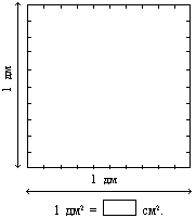 17. Как измерить площадь доски? Какую единицу измерения удобно выбрать? 18. Раздели квадрат, сторона которого равна 1 дм на квадратные сантиметры. Сколько квадратных сантиметров поместилось на одном квадратном дециметре? В одном линейном дециметре 10 линейных сантиметров. 1 дм = 10 см В одном квадратном дециметре 100 см2 1 дм2 = 100 см2 |