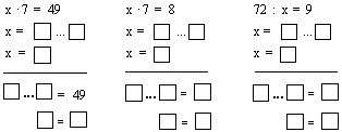Прочитайте третье уравнение, считая справа налево. (Неизвестное число разделить на 7, получится 10).