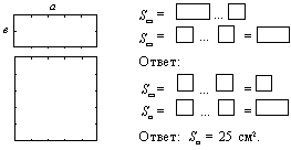 Положи на него по длине квадратные сантиметры. Сколько квадратных сантиметров поместилось по длине? Положи и во втором ряду квадратные сантиметры. Сколько квадратных сантиметров разместилось во втором ряду? Сколько всего квадратных сантиметров разметилось на площади этого прямоугольника? Как узнал? Объясни. |