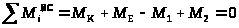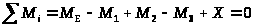 Определяем опорные реакции. Отбросив опору (в данном случае защемление), заменим ее возможными реакциями. Т. к. все активные силы представляют собой крутящие моменты, то в опоре возникает только одно воздействие крутящий момент М>Е>, который определим из уравнения равновесия: