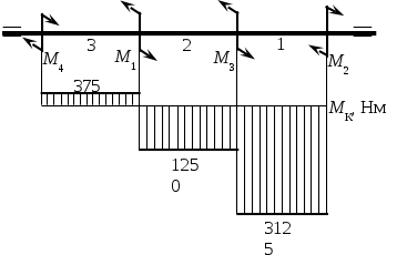 Разбиваем вал на три участка – по сечениям, в которых приложены вращающие моменты. Находим вращающие моменты