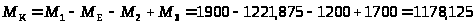 – 1900 + 1200 – 1700 + 1178,125 = 0