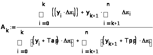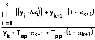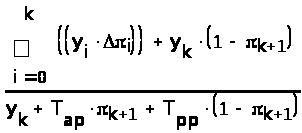 A1:=(Sum+y[k]*(1-pi[k+1]))/(y[k]+Tap*pi[k+1]+Tpp*(1-pi[k+1]));