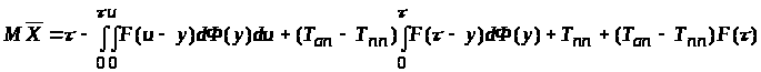 Система, новая в момент t =0, работает до отказа в течение времени о, распределенного но закону F(x). Далее от момента t=о до момента проявления отказа t = о+Ј , в течение случайного времени Ј, распределенного по закону Ф(х), простаивает в неработоспособном состоянии (скрытый отказ). В случайный момент проявления отказа начинается внеплановый аварийно-профилактический ремонт, который длится случайное время y(M>y>=T>ап>) и после которого система полностью обновляется. После окончания ремонта весь процесс функционирования системы и ее обслуживания повторяется.