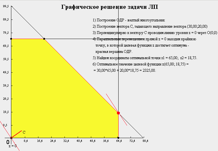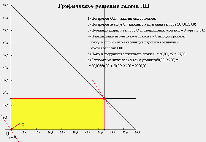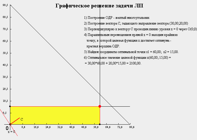 По виду целевой функции определяем вектор нормали, относительно которого ищем оптимальный объём производства радиоприёмников.