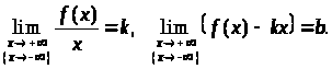Теорема 6. Для того чтобы прямая у = kx + b являлась наклонной асимптотой графика функции f (х) при х ® +¥ или х ® – ¥, необходимо и достаточно существование конечных пределов: