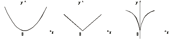 Точками, подозрительными на экстремум функции f (x) на интервале (a, b), являются точки, в которых производная существует и равна 0 либо она не существует или равна бесконечности. На рисунках функции имеют минимум в точке х>0> = 0:
